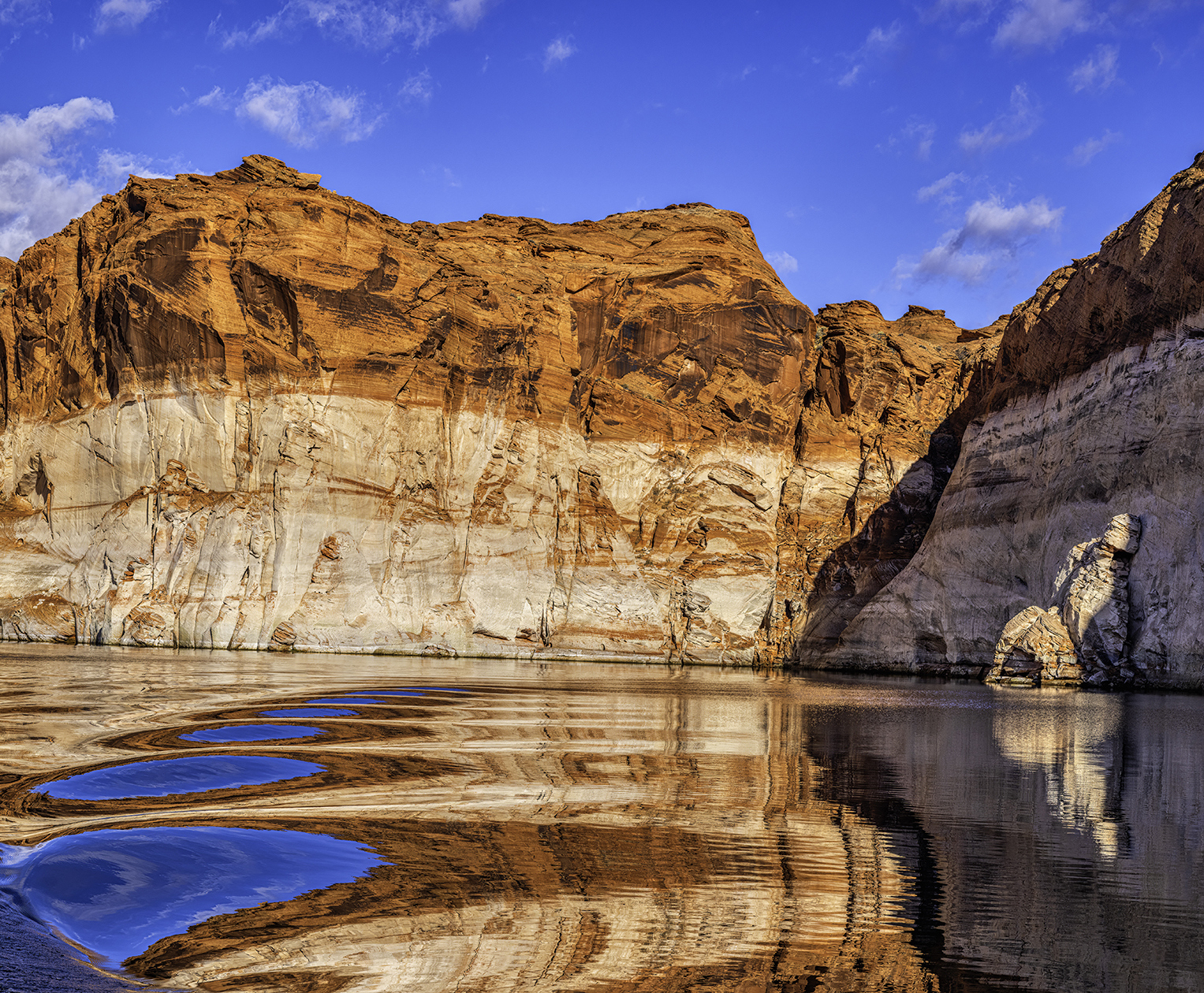 Afternoon clouds and calm water at Lake Powell in the Glen Canyon National Rec. Area