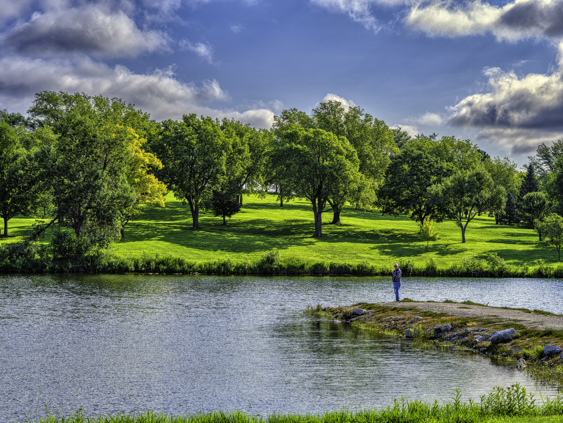 Morning fisherman and Skyview Lake in Norfolk Nebraska.