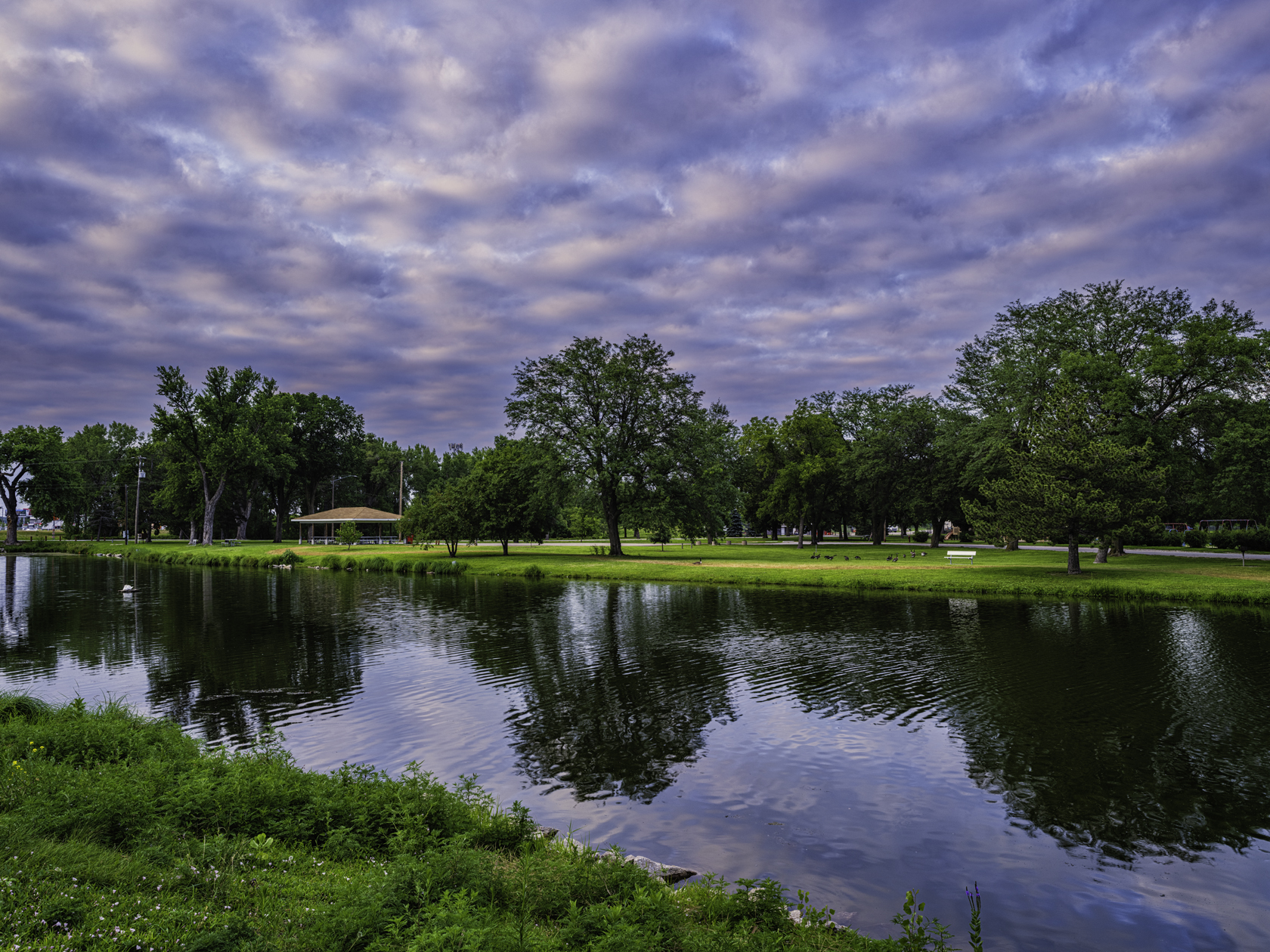 Evening clouds are reflected in the lake at Ta-Ha-Zooka Park in Norfolk Nebraska