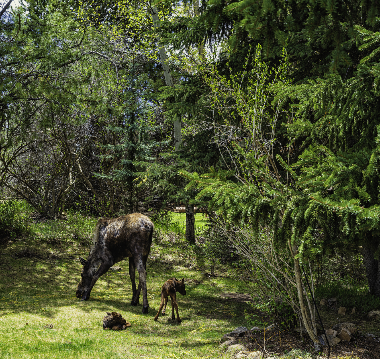 Newly born moose twins and mother at Grand Teton National Park