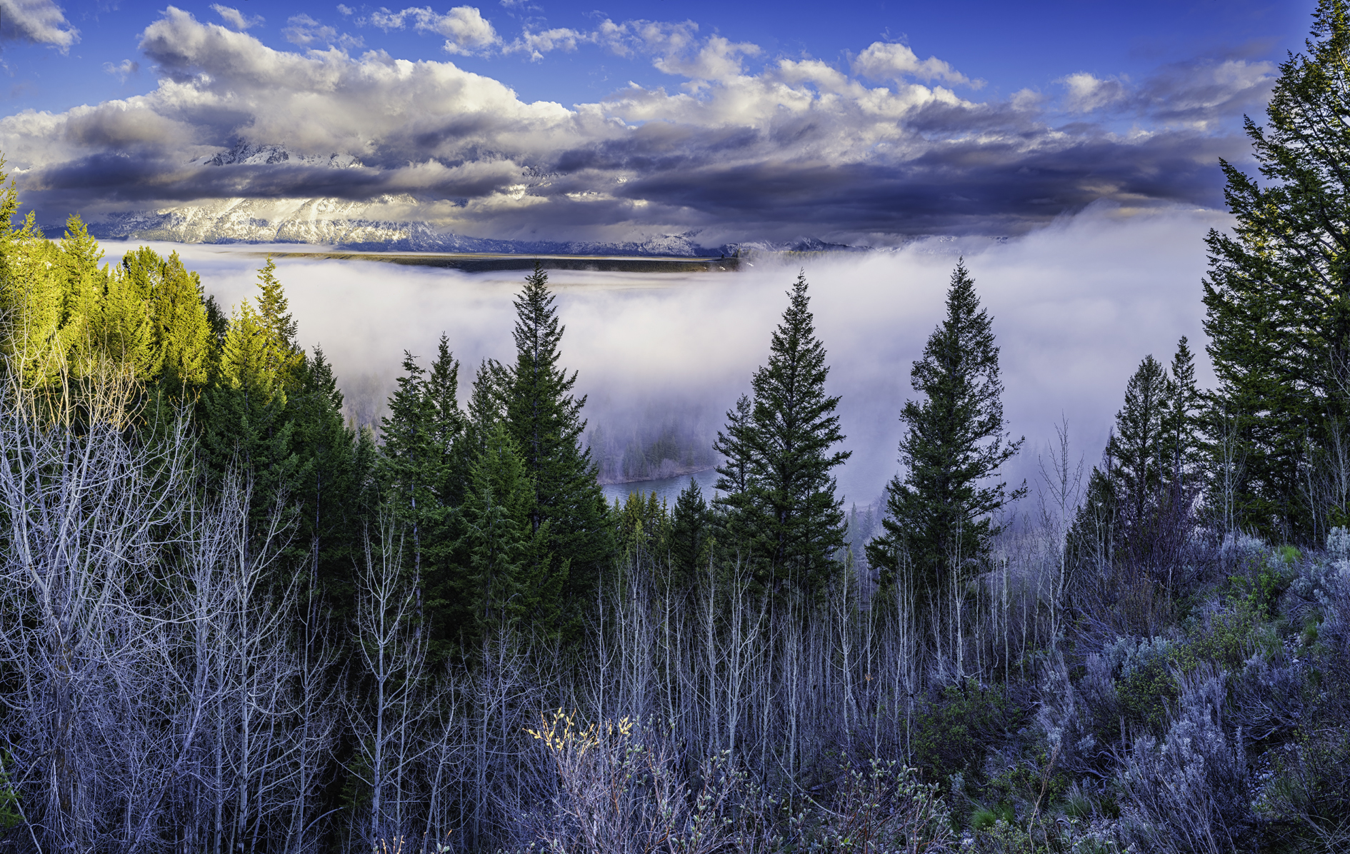 Morning fog floats above the Snake River in Grand Teton National Park